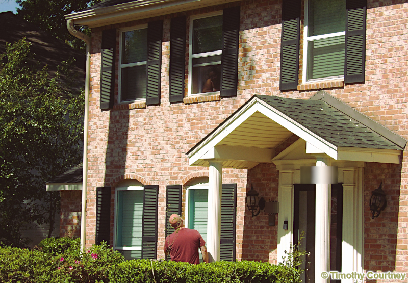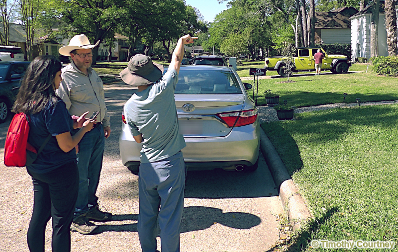 The home of the lost meteoroid was buzzing with media ever since the moment the fire department received confirmation the rock was in fact from outer space. This story attracted reporters from all over and they each hurried to get their scoop. This media reporter hurried into the home where she had apparently made an appointment with Sherrie James to interview her. I later asked Sherri who she was with, and she said "NBC or CBS or something. One of them". Sherrie then stopped her visits with others briefly to answer this lady's questions. She later came back outside during the interview, looking for the faculty member from Rice University. Perhaps the reporter considered getting some information from an expert about the rock from out of this world.