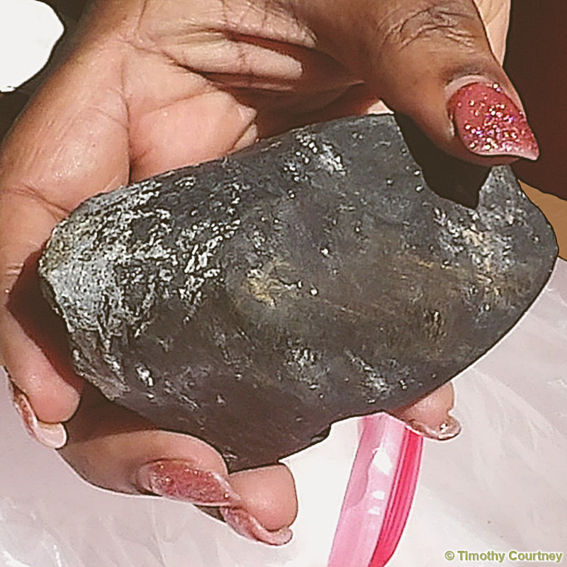 Sherrie showed me the meteorite which had gone through her roof, and landed in her bedroom. It hit the floor at such a high speed, that it busted the flooring up, and then bounced back up to the ceiling causing more damage, before falling onto her bed with a thud and sheetrock dust. As she told me details of this meteorite event, I realized just how lucky she is to be alive.